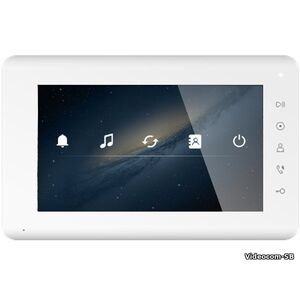 Монитор цветного видеодомофона адаптированный для работы с координатными подъездными домофонами, 7 дюймов с сенсорными кнопками и поддержкой форматов CVBS (PAL / NTSC). Тонкий корпус 18мм со встроенным блоком питания.