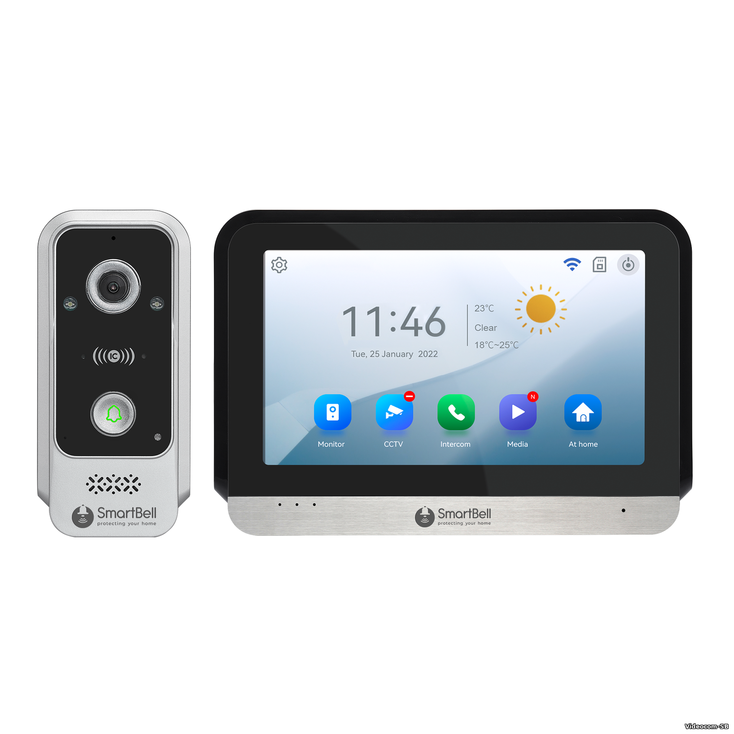 - Опция: Поддержка 10 вызывных панелей, 8 видеокамер, 9 видеодомофонов, 8 датчиков